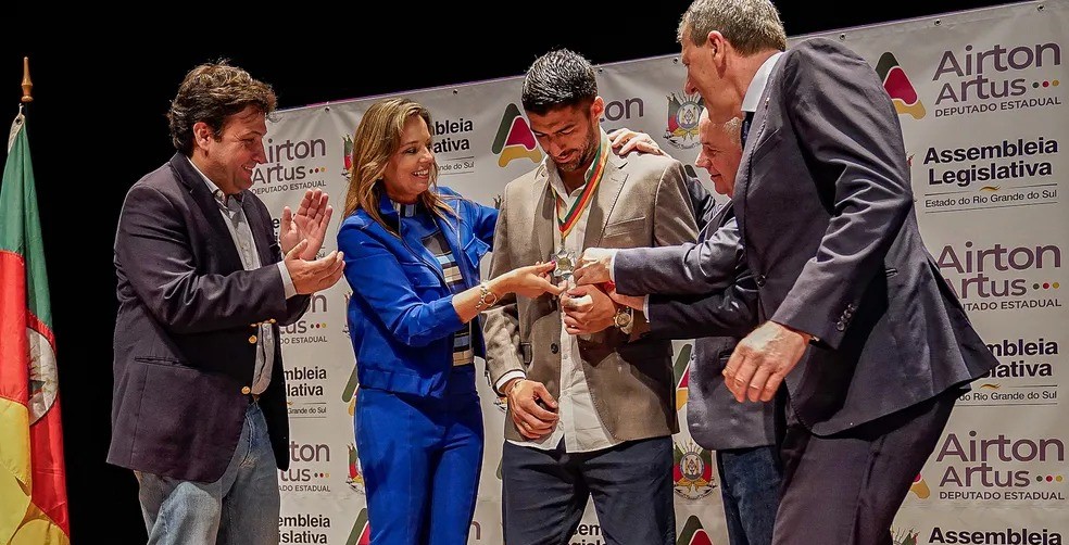 Camisa 9 uruguaio foi homenageado no início da tarde da terça-feira, na Assembleia Legislativa do Rio Grande do Sul e na Câmara de Vereadores de Porto Alegre