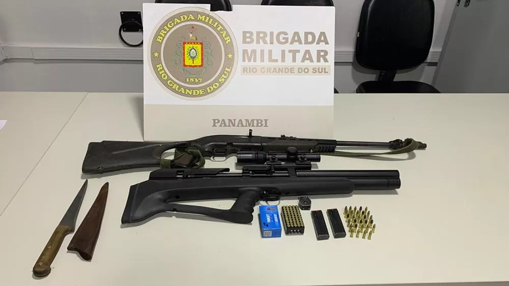Durante a ação, a Brigada Militar apreendeu armas, munições e objetos que pertencem à vítima do roubo.