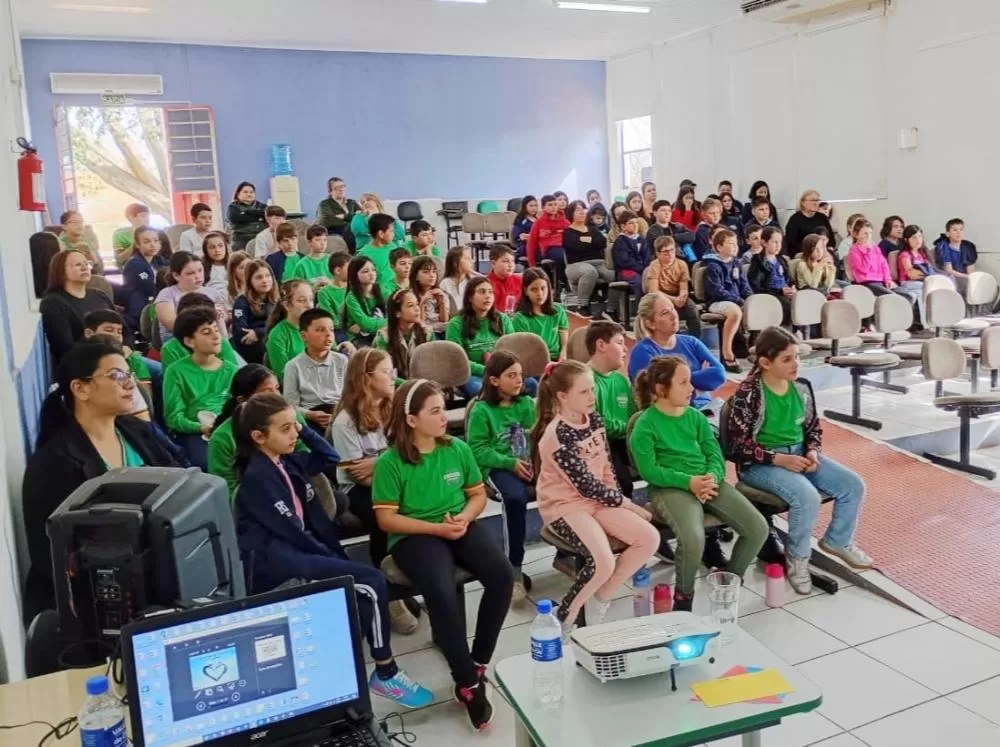 As atividades ocorreram nos turnos da manhã e tarde, contemplando turmas do 3º ano do Ensino Fundamental ao 3º ano do Ensino Médio, tanto das escolas municipais quanto da escola estadual. Para ampliar o aproveitamento dos conteúdos, os encontros foram organizados por faixa etária, possibilitando discussões adequadas a cada grupo.