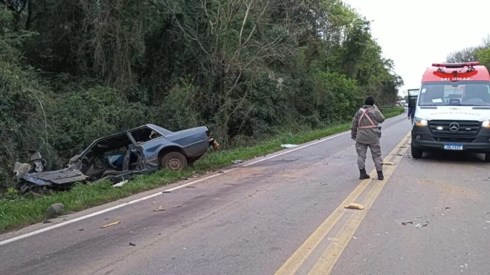 Conforme informações obtidas pelo repórter policial João Victor Lopes, um veículo Ford Del Rey, que trafegava no sentido Passo Fundo–Ernestina, invadiu a pista contrária e colidiu frontalmente contra uma ambulância do município de Tio Hugo. Na lateral da ambulância também acabou sendo atingido um Volkswagen Fusca.