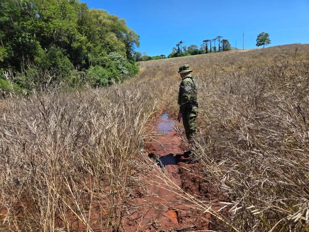 A Brigada Militar, por meio do 3º Batalhão Ambiental (BABM), flagrou, nesta segunda-feira (20/10), um caso de poluição do solo em uma propriedade localizada no município de Boa Vista das Missões.