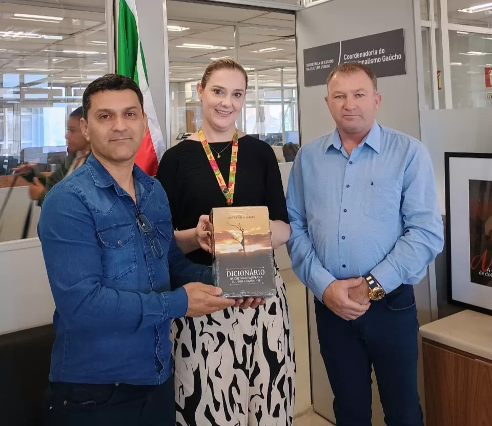 A agenda incluiu ainda uma visita à Secretaria de Cultura, onde o prefeito e o agente administrativo reuniram-se com a coordenadora do Tradicionalismo Gaúcho, Denise Gress, para tratar sobre recursos destinados à área cultural.