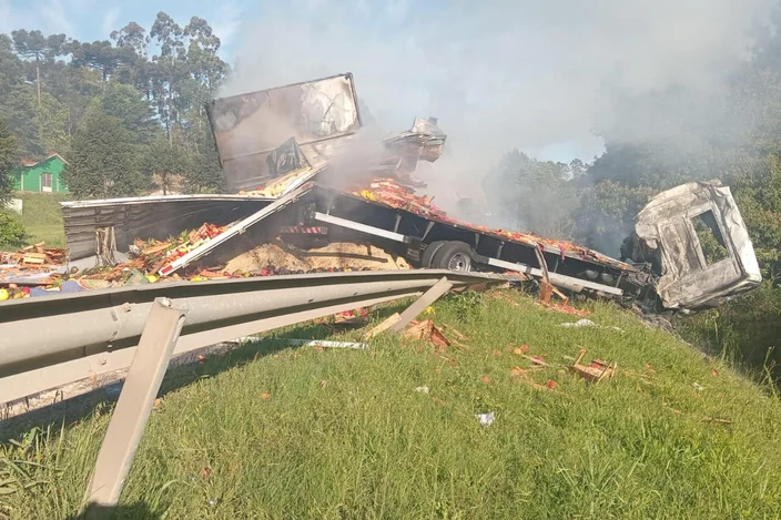 As chamas foram controladas por volta das 7h40min. Um dos caminhões estava carregado com frutas e o outro, soja. Ainda não se sabe quem eram as vítimas ou o que causou o acidente.