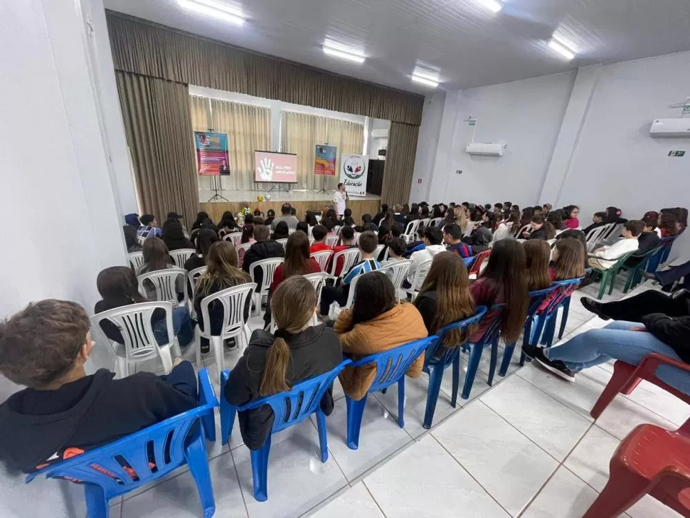 Durante a atividade, André Piovesan conversou com os alunos sobre as diferentes formas de bullying — físico, verbal, psicológico e virtual — e destacou como pequenas atitudes podem gerar grandes impactos na vida de uma pessoa. Por meio de histórias reais, vídeos e exemplos do cotidiano, ele incentivou os jovens a dizer “não ao bullying” e a se tornarem agentes de mudança dentro da comunidade escolar.