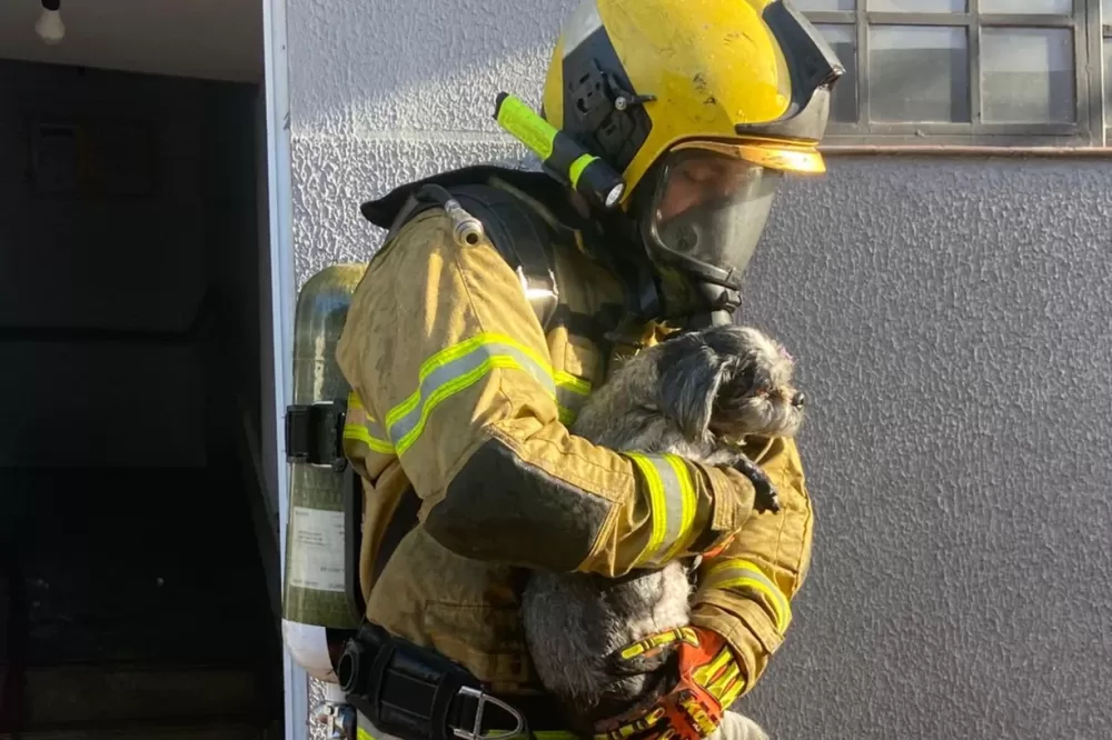 Uma idosa vivia no apartamento e conseguiu sair do local sem ferimentos, antes que as chamas se propagassem. O cachorro da moradora precisou ser resgatado, foi encaminhado para atendimento veterinário e passa bem.