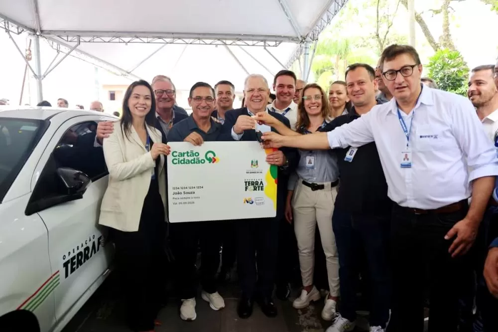 O governador Eduardo Leite entregou, nesta segunda-feira (22), na sede central da Emater/RS-Ascar, em Porto Alegre, 121 veículos que serão utilizados na Operação Terra Forte, além das primeiras unidades do Cartão Cidadão a agricultores familiares selecionados pelo programa.
