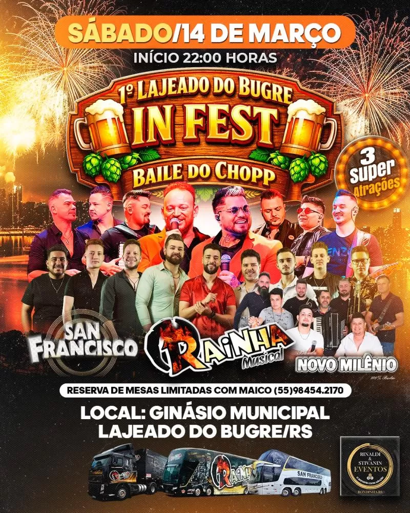 O evento é uma realização da Prefeitura de Lajeado do Bugre, com apoio da Câmara de Vereadores, e promete reunir a comunidade e visitantes da região em um grande momento de celebração, valorizando a cultura local, a música e as tradições do município.