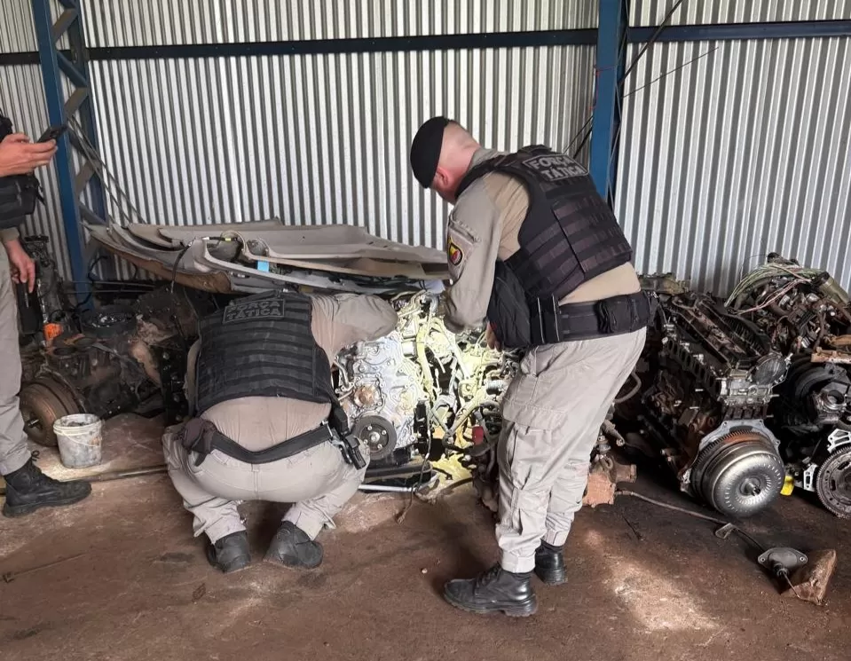 A prisão foi resultado de trabalho de monitoramento e diligências realizadas pelos policiais militares do 37º BPM em um galpão localizado na zona rural do município. No local, os suspeitos foram abordados e os policiais constataram indícios de que o espaço estava sendo utilizado para a desmontagem de veículos.