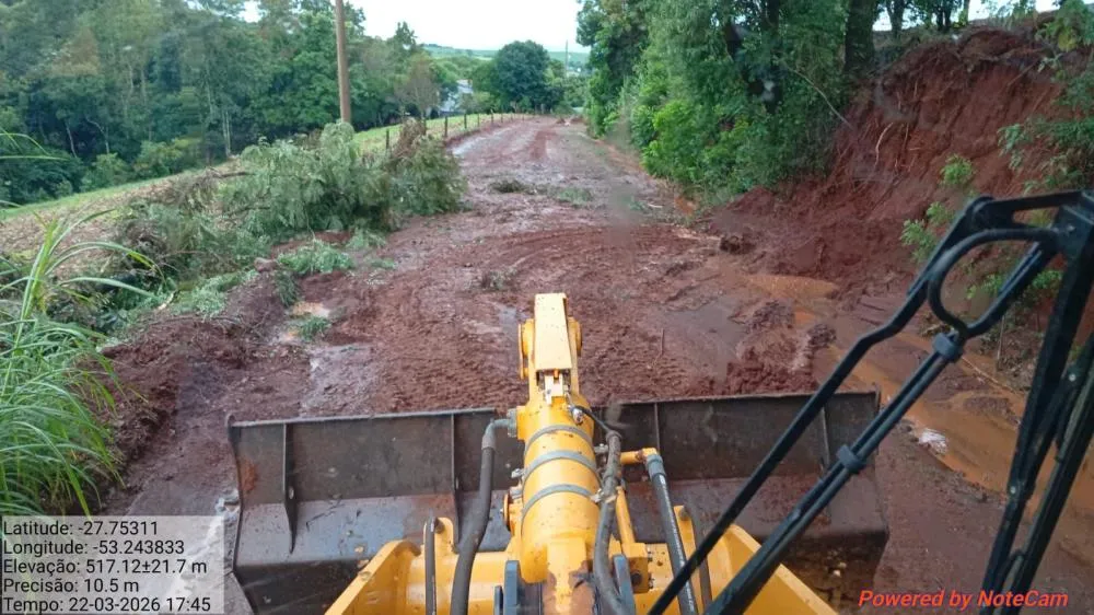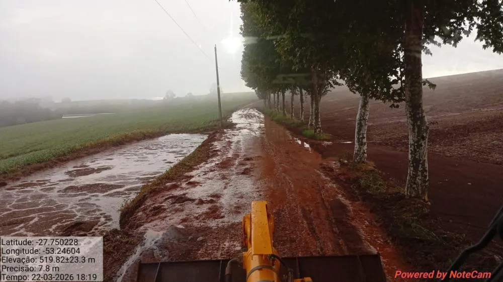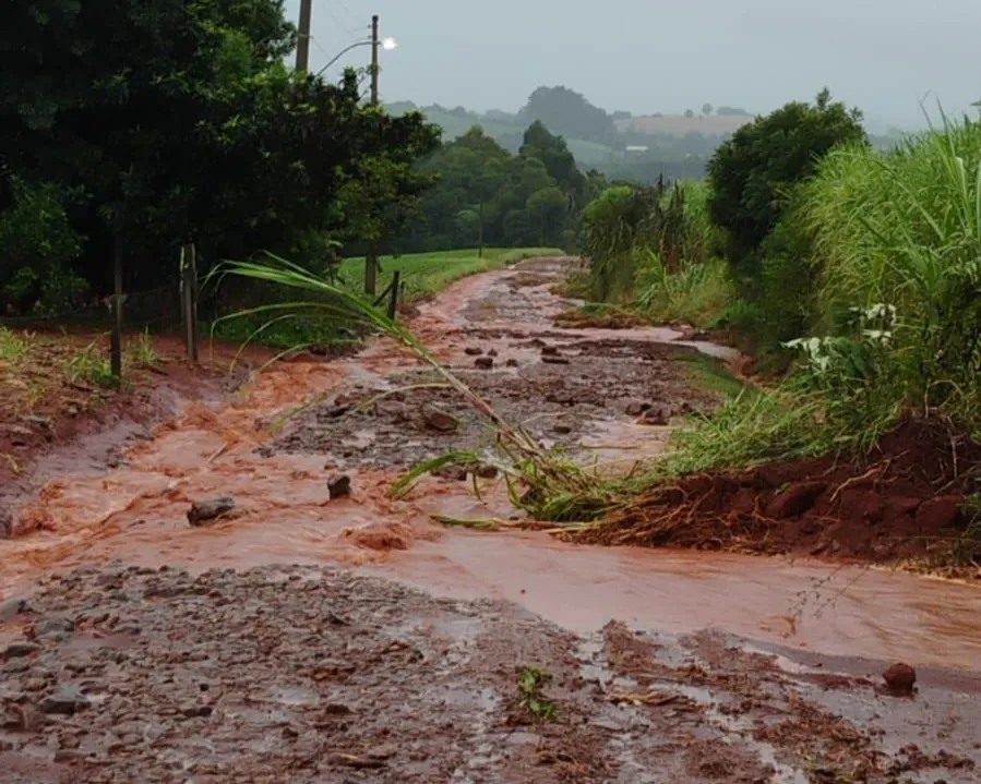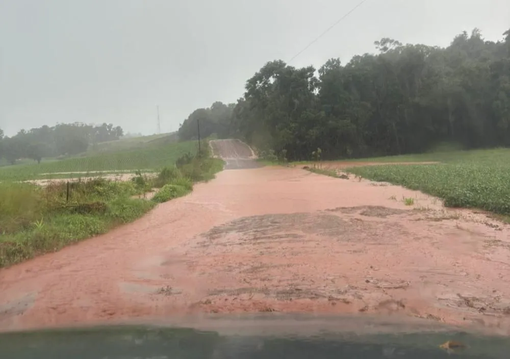 De acordo com informações, o município registrou cerca de 140 milímetros de chuva em menos de uma hora, volume que contribuiu para os danos em estradas vicinais, bueiros e outros pontos da infraestrutura rural.