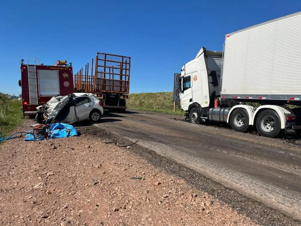 O carro possuía placas de Palmeira das Missões, enquanto o caminhão tinha placas do Paraná.