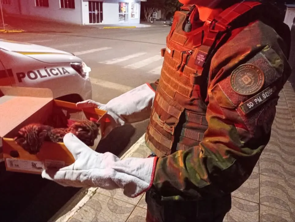 Na noite deste sábado (11), a Brigada Militar realizou o resgate de dois filhotes de jaguatirica (Leopardus pardalis) no município de Seberi.