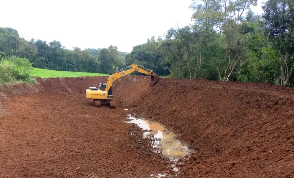 O município de Jaboticaba está realizando a construção e reforma de açudes com o objetivo de garantir o armazenamento de água para o consumo animal, como parte das ações de enfrentamento à estiagem registrada em 2025.