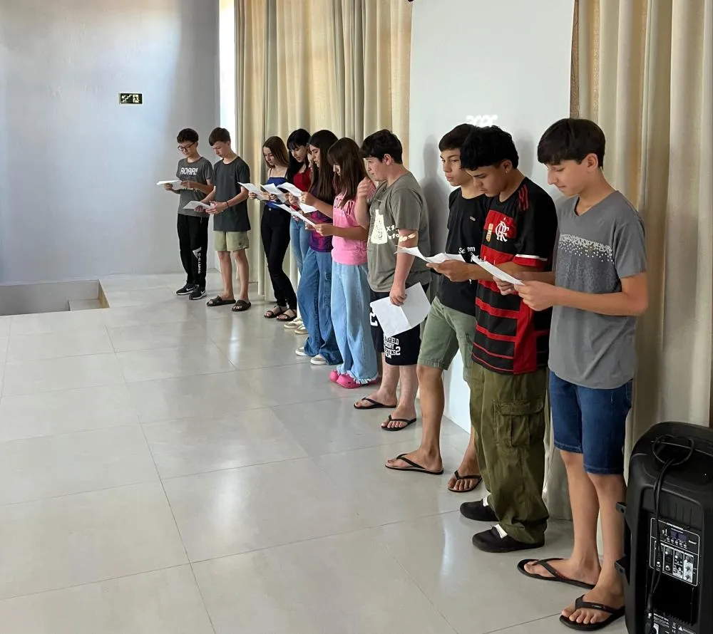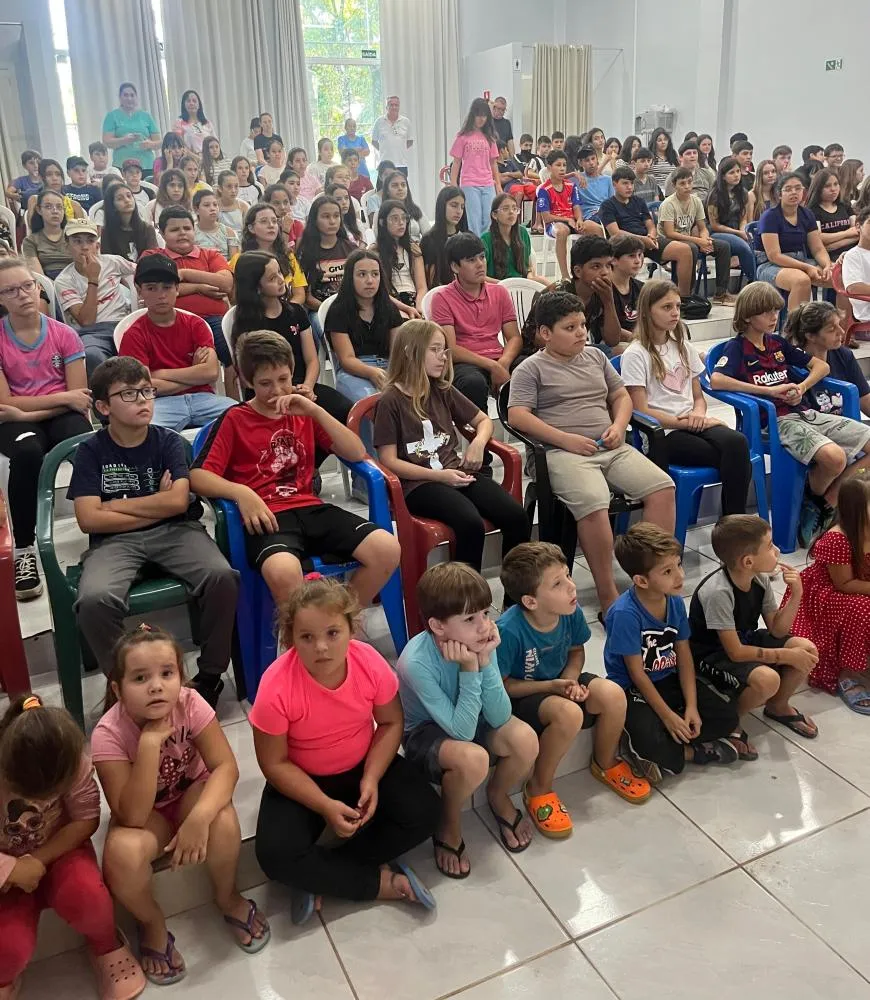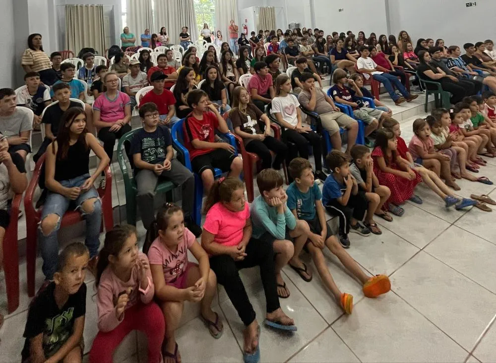 O evento aconteceu no Centro Cultural, reunindo estudantes, professores e equipes escolares em um momento marcado por integração, reflexão e vivência dos valores que a Páscoa representa.
