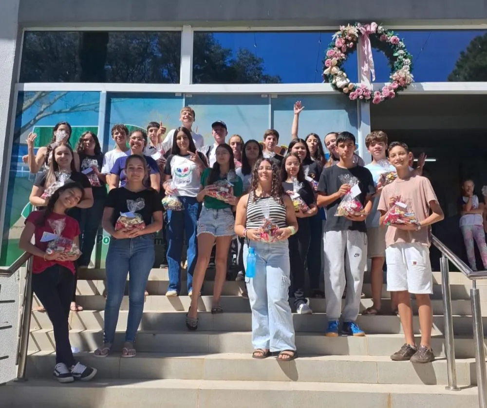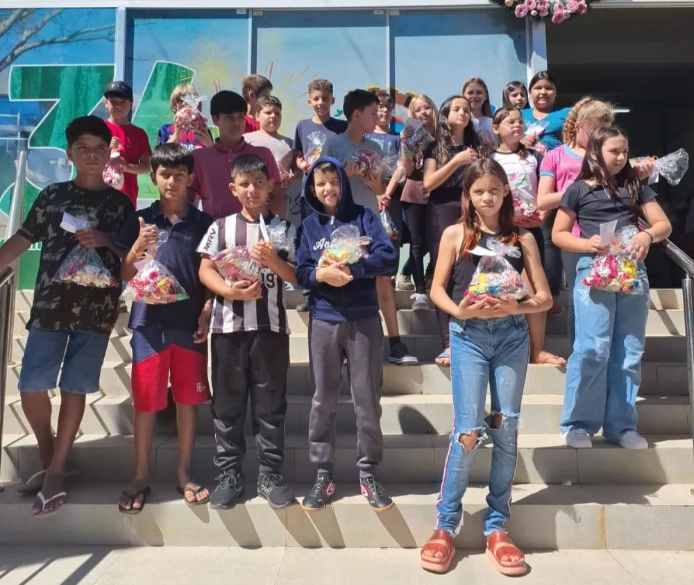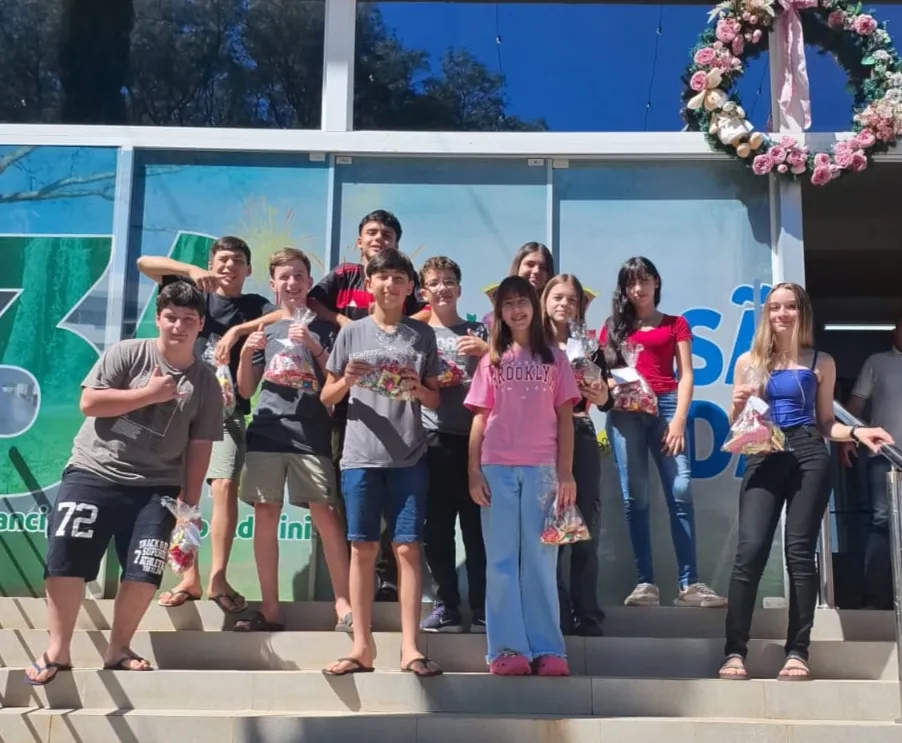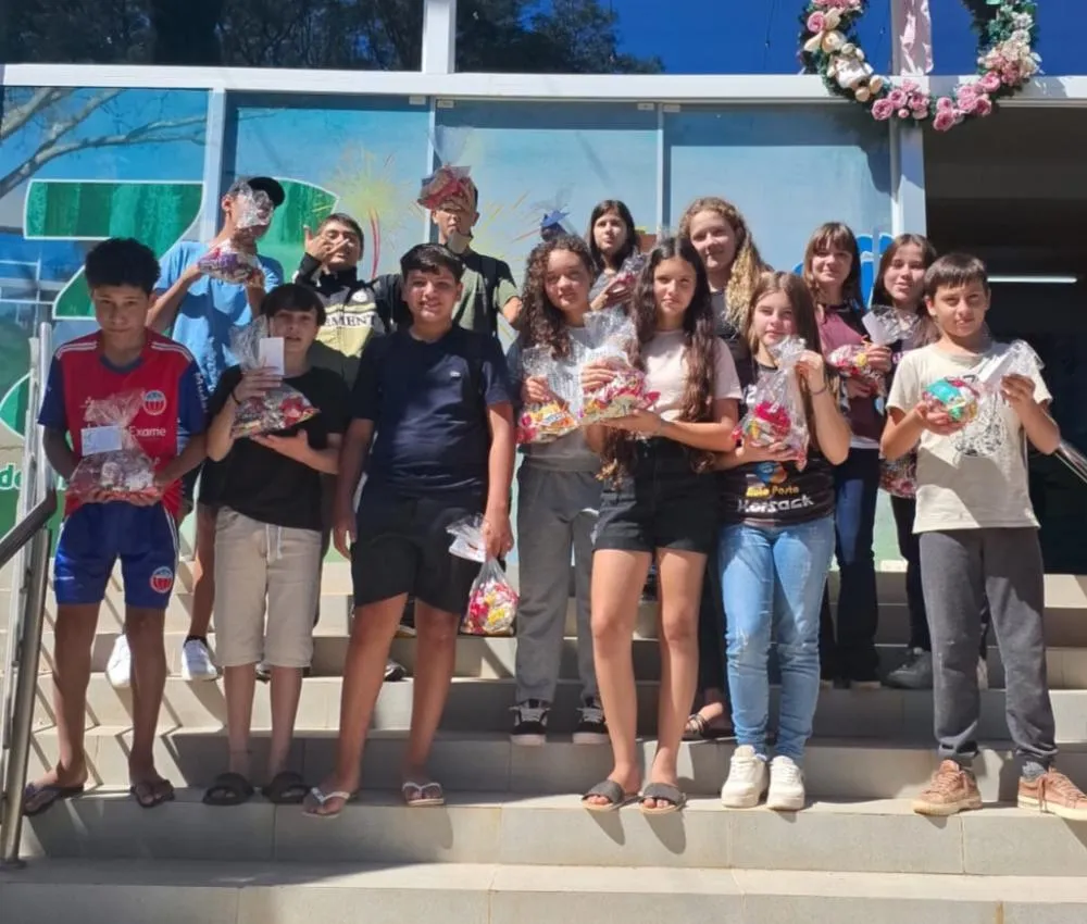 Após a celebração, foi realizado um momento de confraternização nas escadarias do Centro Administrativo, onde os alunos receberam um mimo de doces, preparado com carinho, simbolizando o espírito de partilha e alegria da data.