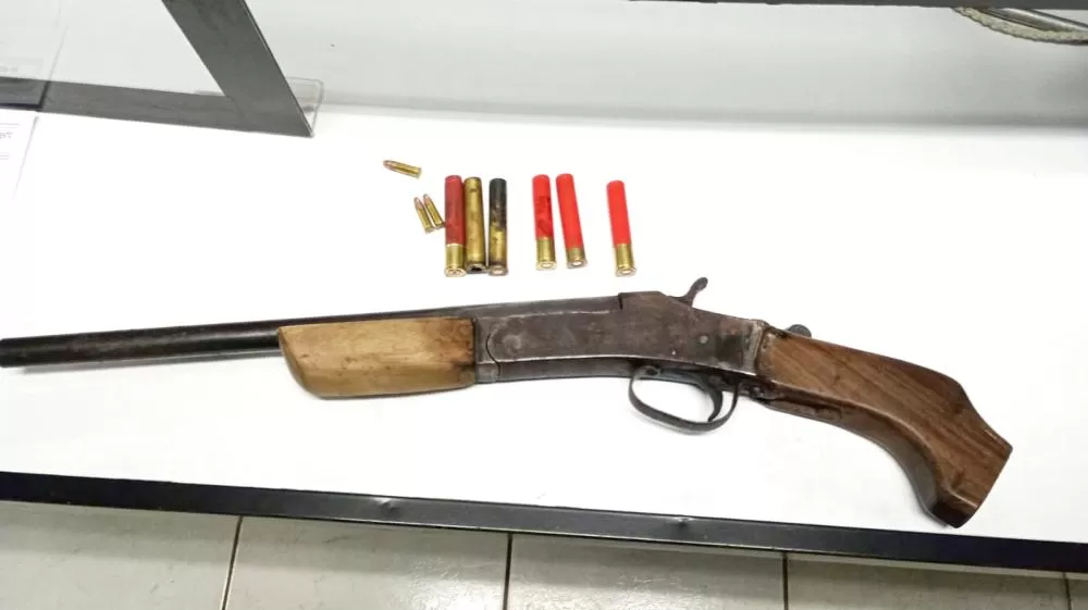 Ação ocorreu após denúncia de disparos durante uma briga; arma, munições e outros objetos foram apreendidos.