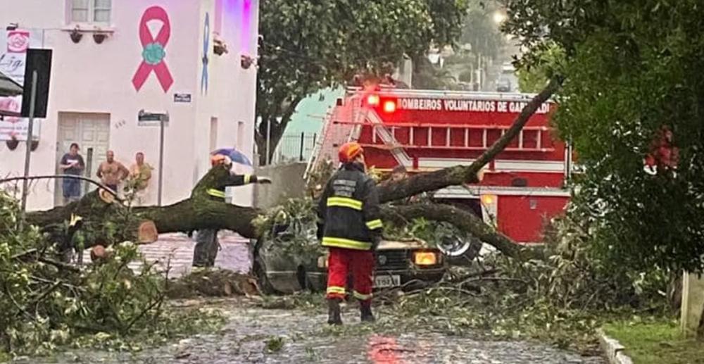 Chuvas, raios e vento de 105 KM/H causam danos no RS em dia de 38°C