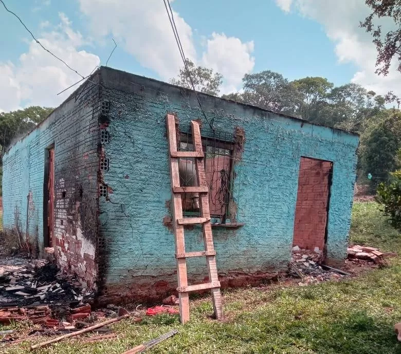 A casa foi completamente consumida pelo fogo, e a família perdeu todos os seus pertences.