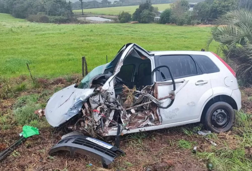 Mulher é resgatada com vida após colisão supostamente intencional de carro contra caminhão entre Soledade e Espumoso.