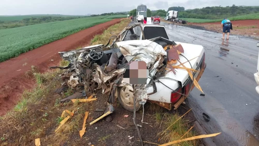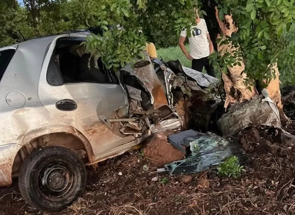 Com o impacto, o carro ficou completamente destruído e o motorista morreu ainda no local.