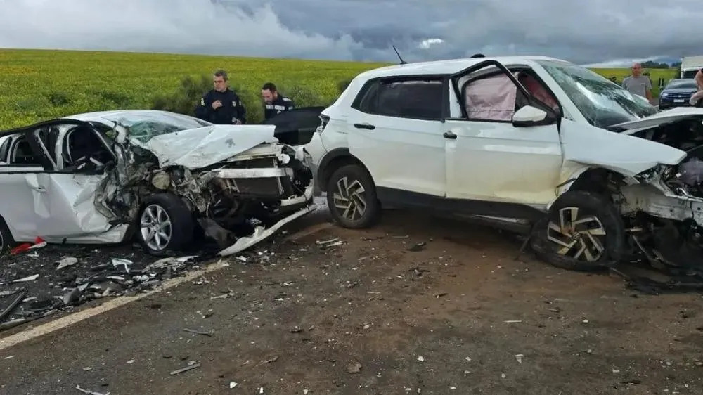 Duas pessoas morrem e duas ficam feridas em acidente entre carros e caminhão na BR-386, em Tio Hugo