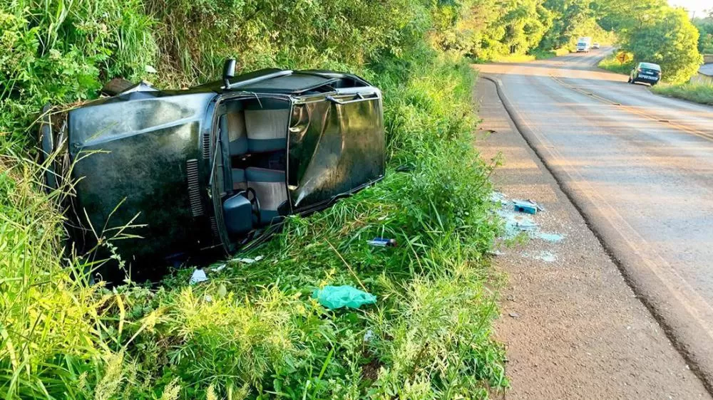De acordo com as informações, o motorista perdeu o controle do veículo, saindo da pista, descendo uma ribanceira e tombando em uma lavoura.