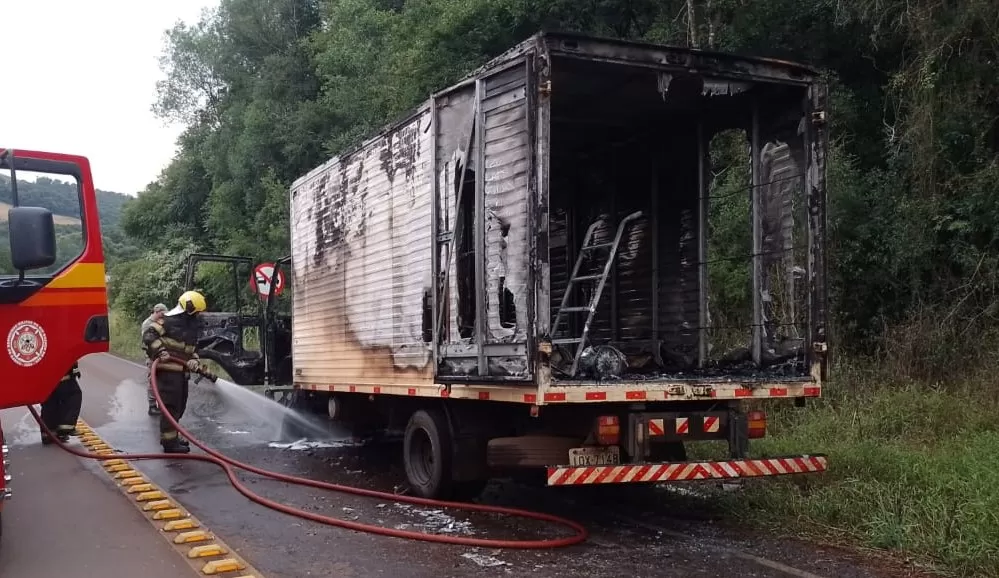 Veículo que transportava 28 conjuntos de sofás foi completamente destruído pelo fogo