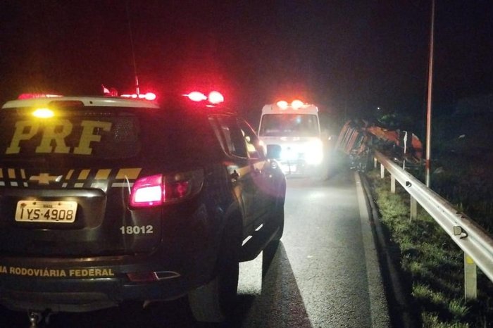Segundo informações, o veículo capotou devido a uma falha mecânica.