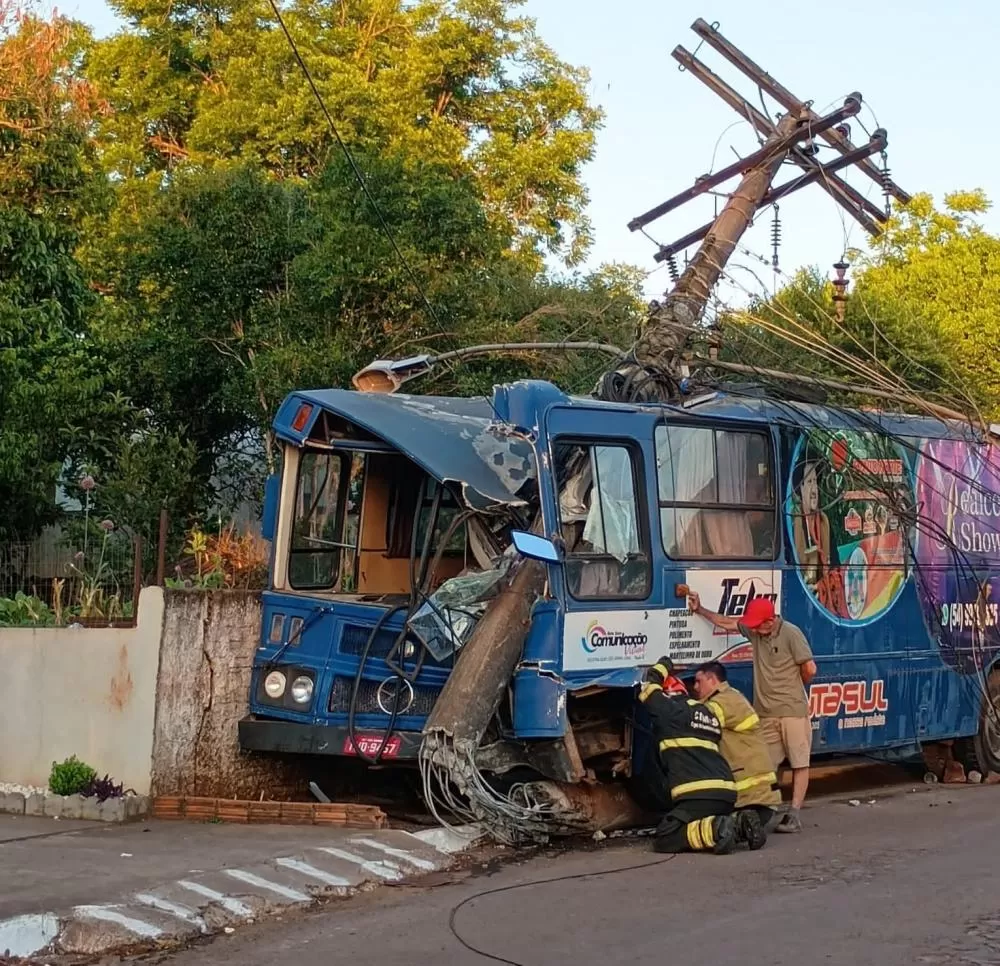 Condutor perde o controle de ônibus e colide contra poste em Novo Barreiro